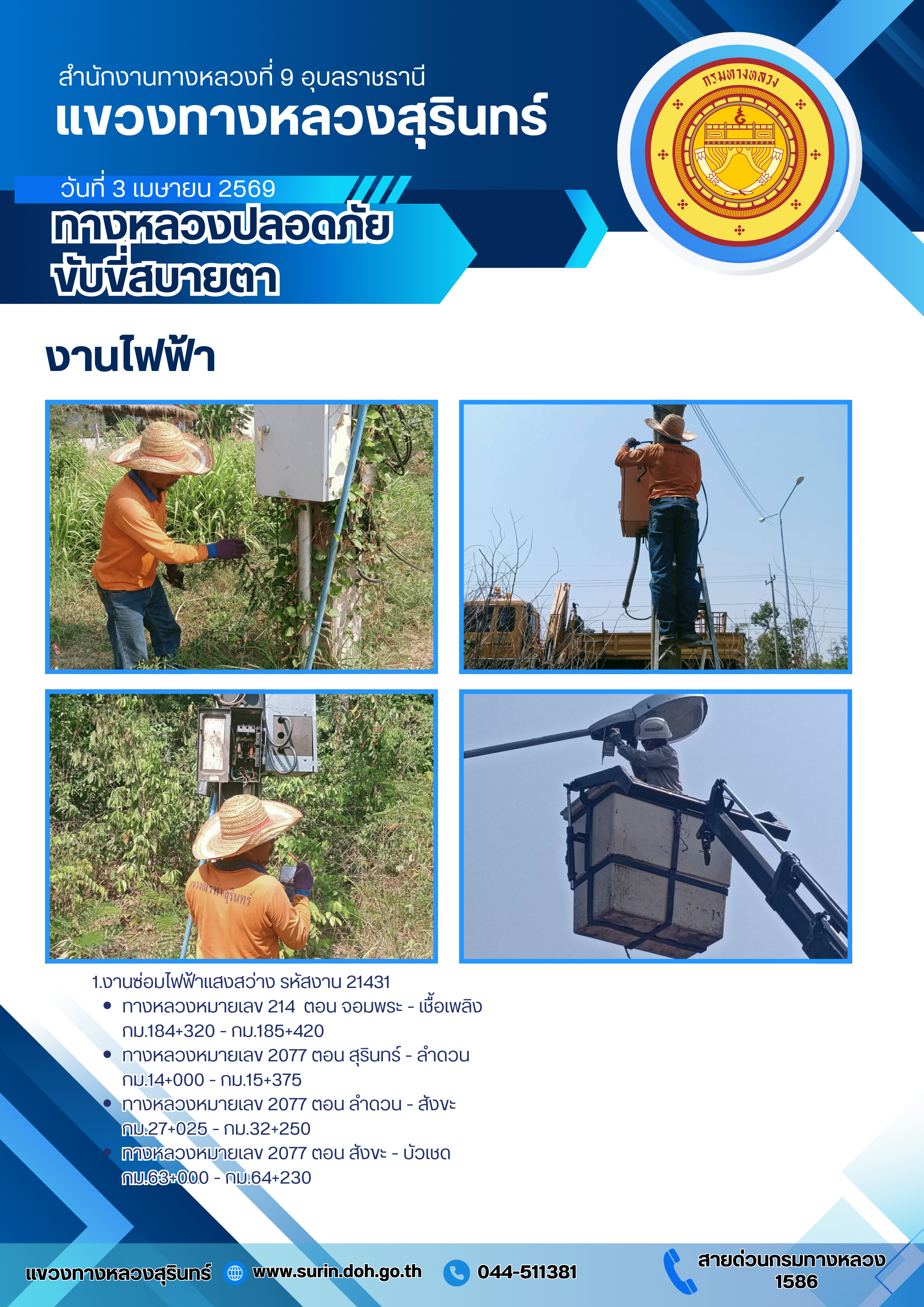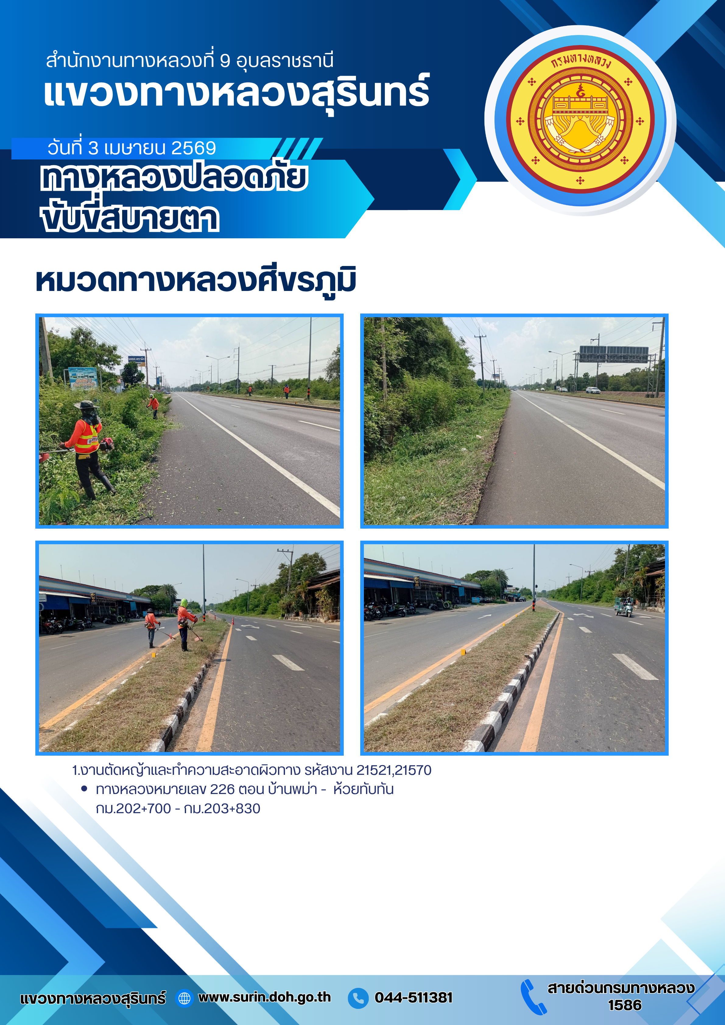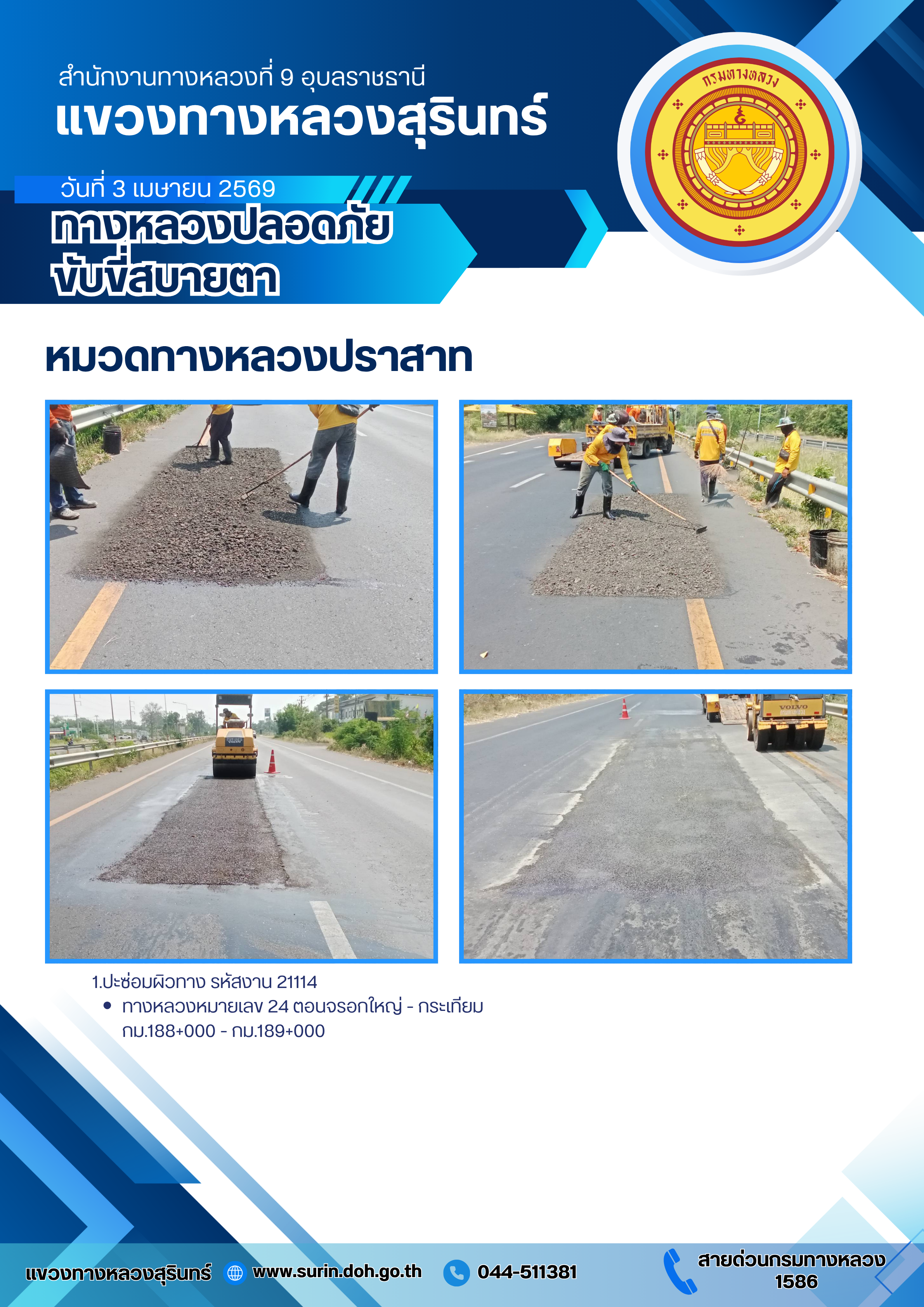 ทางหลวงปลอดภัย ขับขี่สบายตา 3 เมษายน 2569