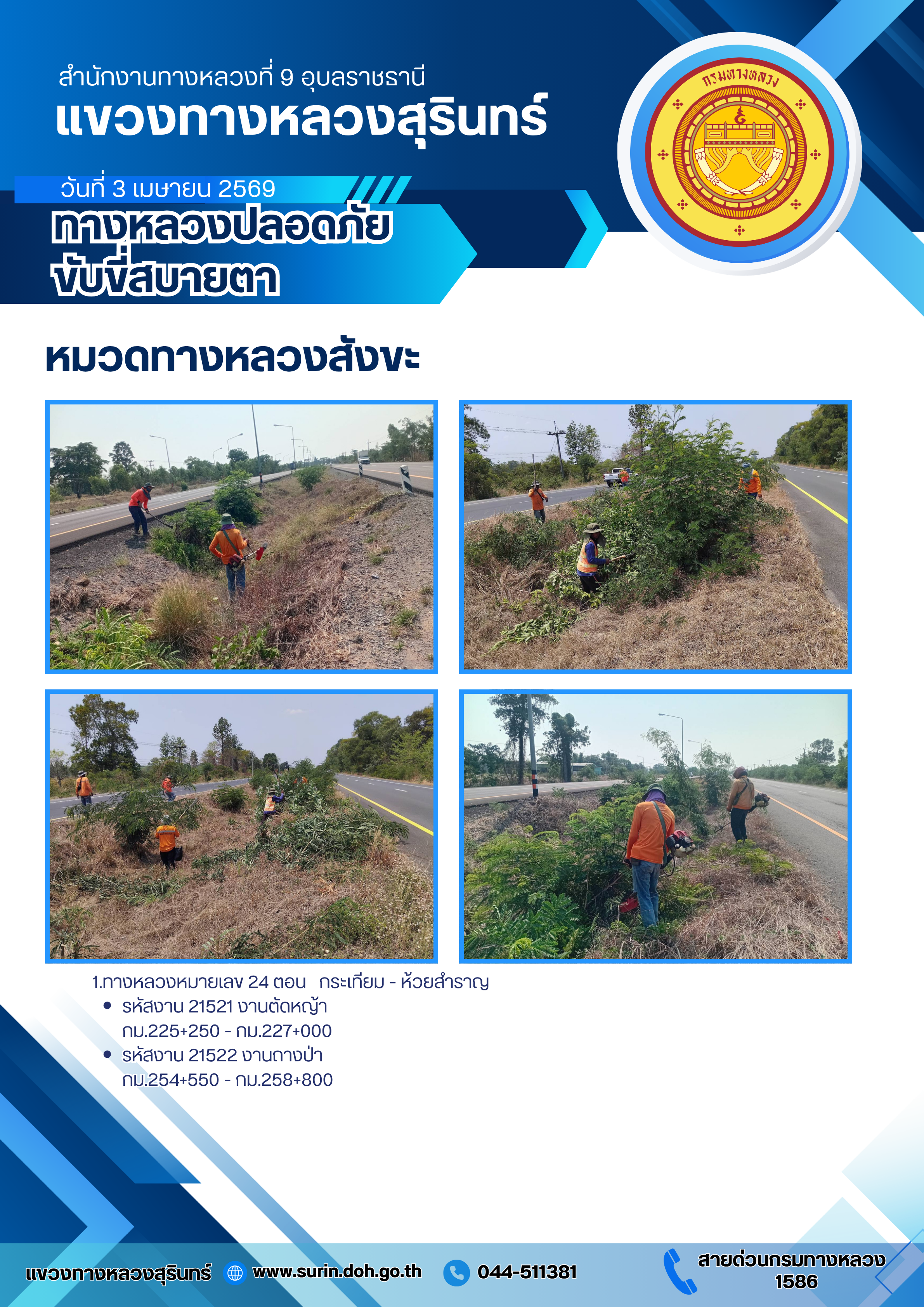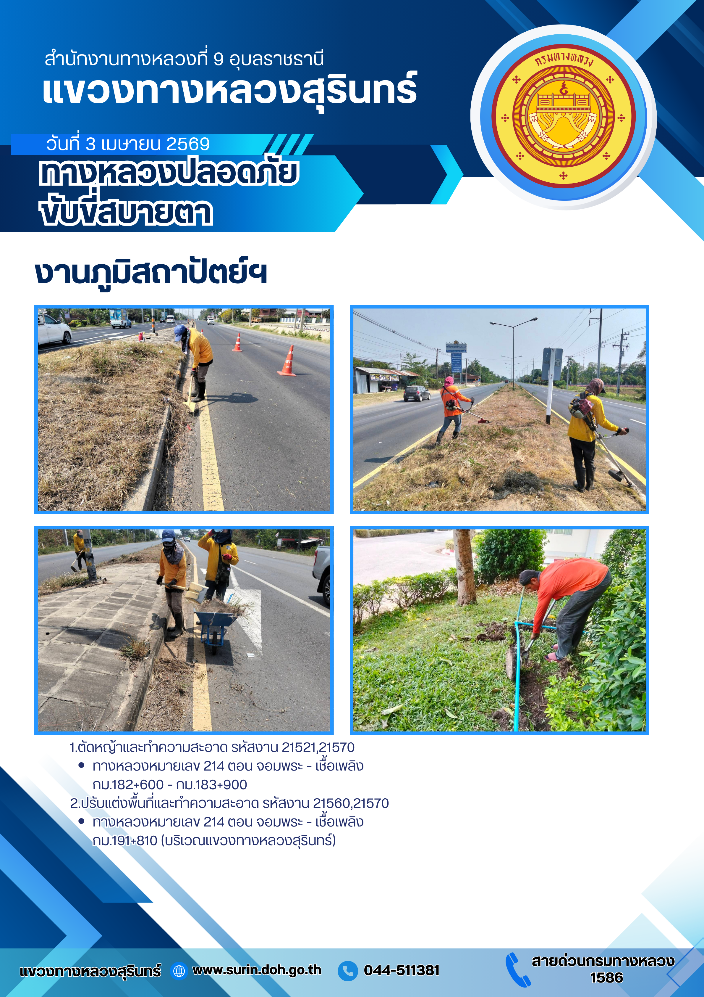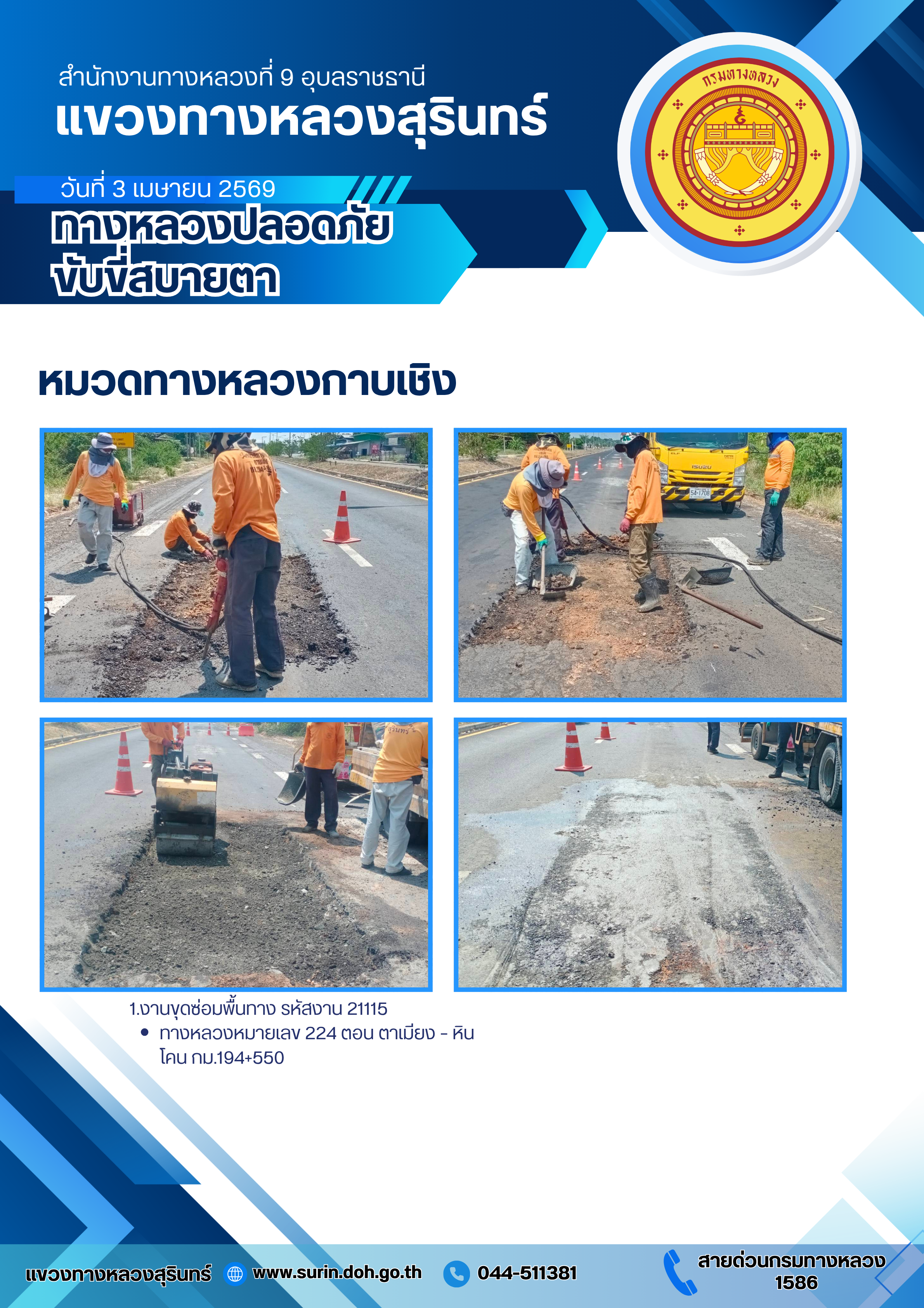ทางหลวงปลอดภัย ขับขี่สบายตา 3 เมษายน 2569