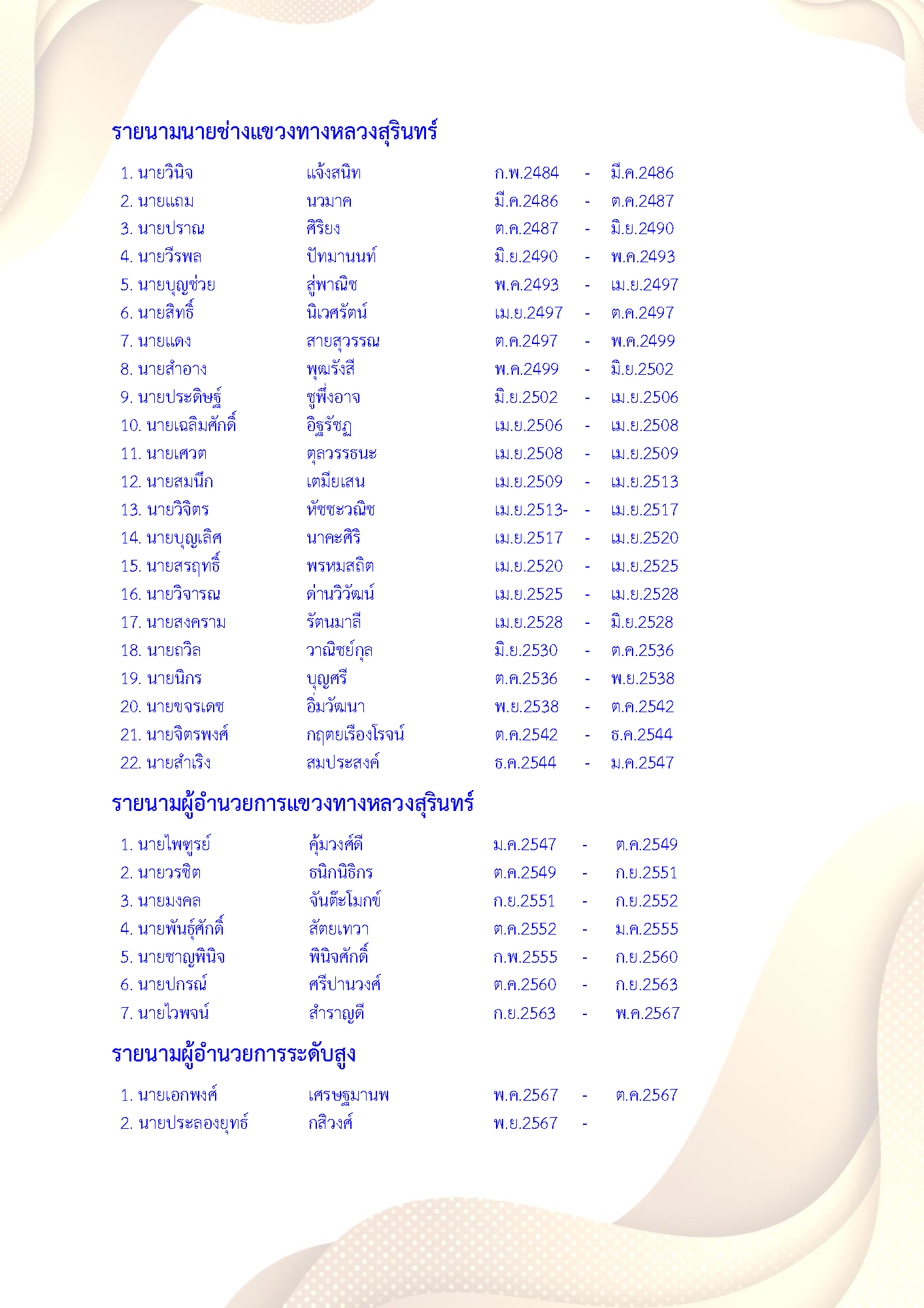 เนื้อหาเพจ : ทำเนียบผู้บริหาร 67