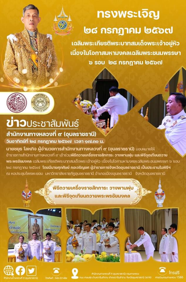 ร่วมพิธีถวายเครื่องราชสักการะ วางพานพุ่ม และพิธีจุดเทียนถวายพระพรชัยมงคล เฉลิมพระเกียรติพระบาทสมเด็จพระเจ้าอยู่หัว