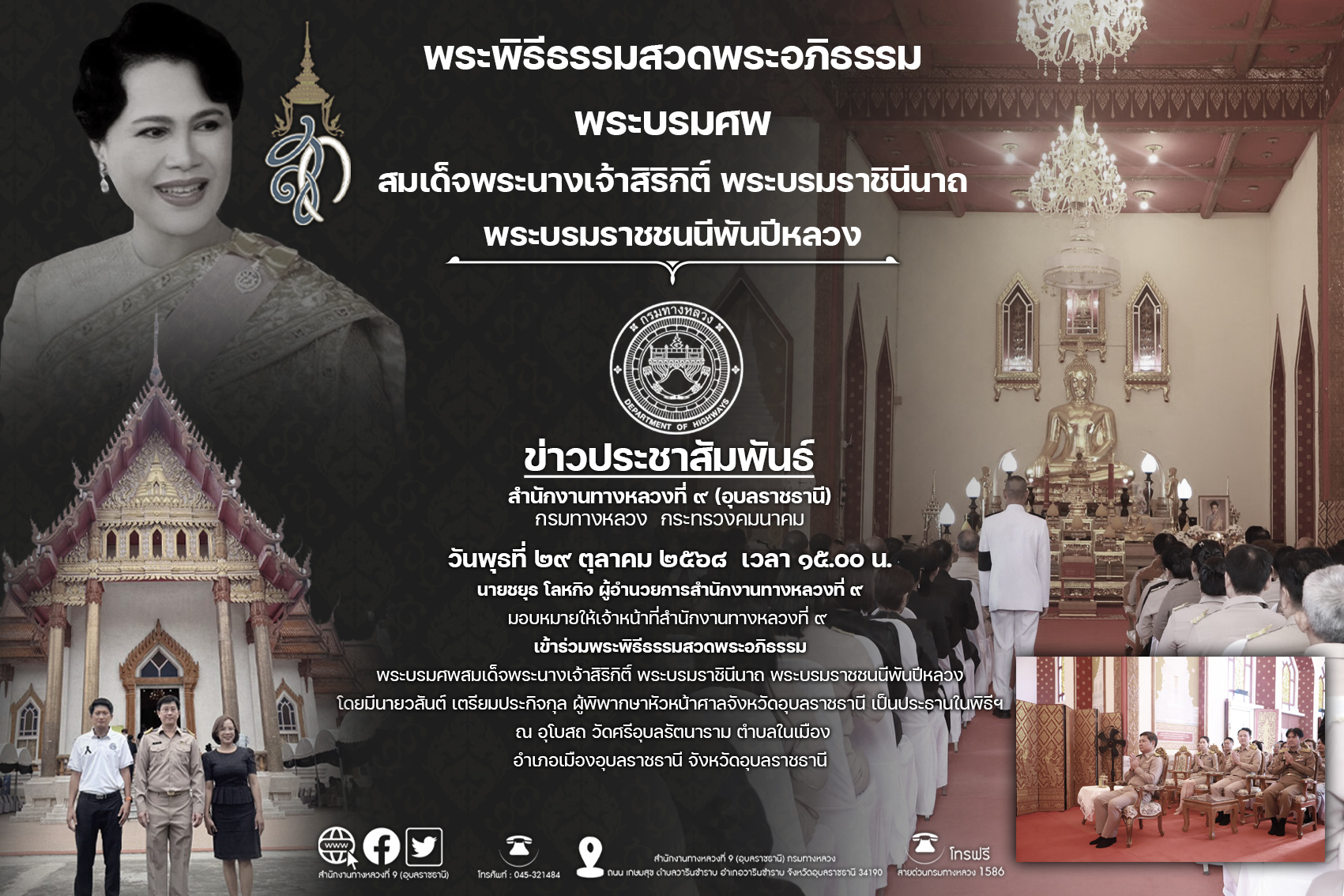 พิธีบำเพ็ญกุศล สวดอภิธรรม อุทิศถวายพระราชกุศลแด่สมเด็จพระนางเจ้าสิริกิติ์ พระบรมราชินีนาถ พระบรมราชชนนีพันปีหลวง