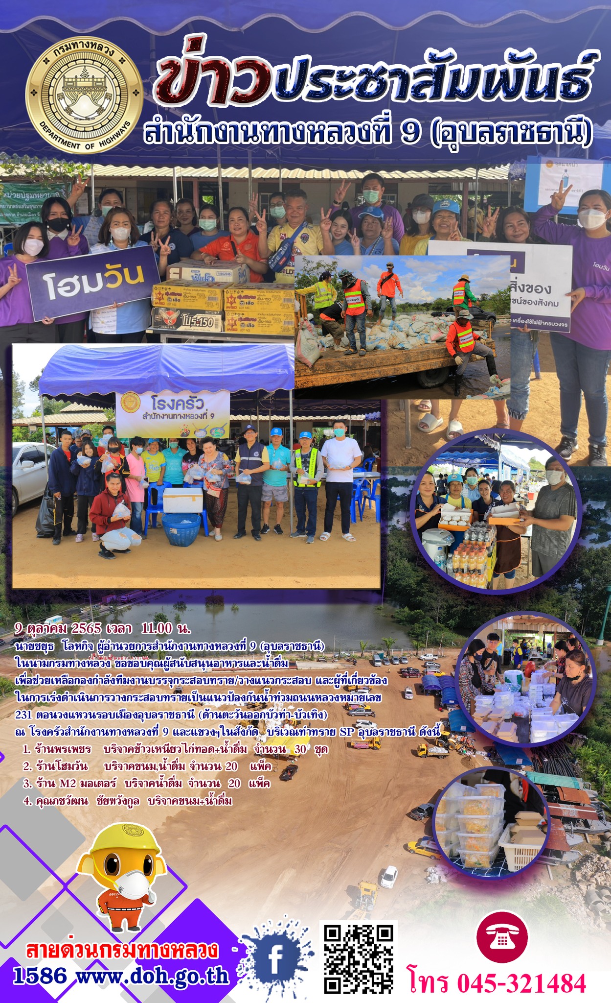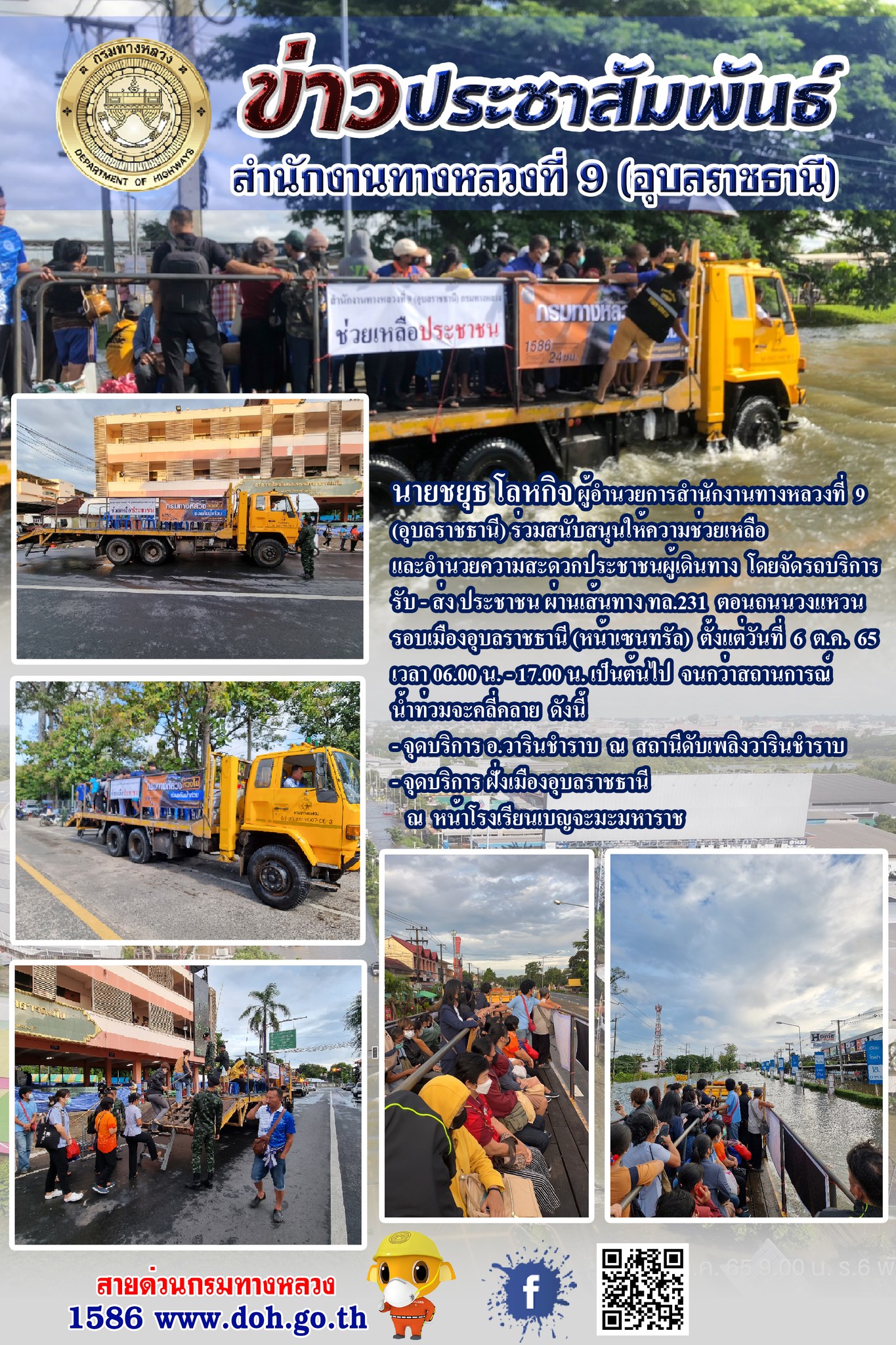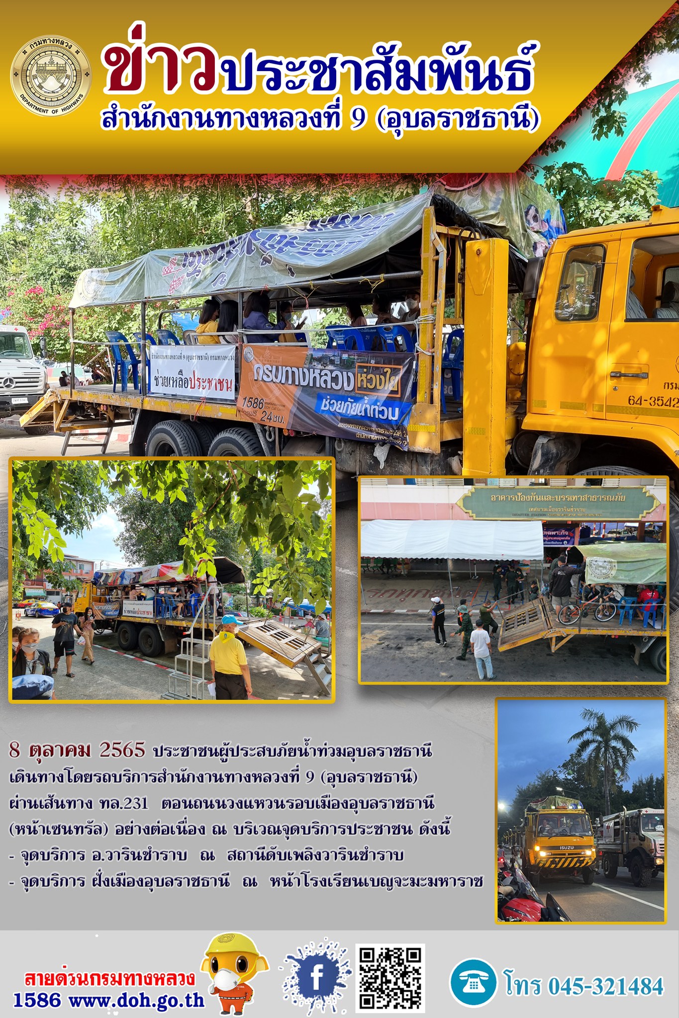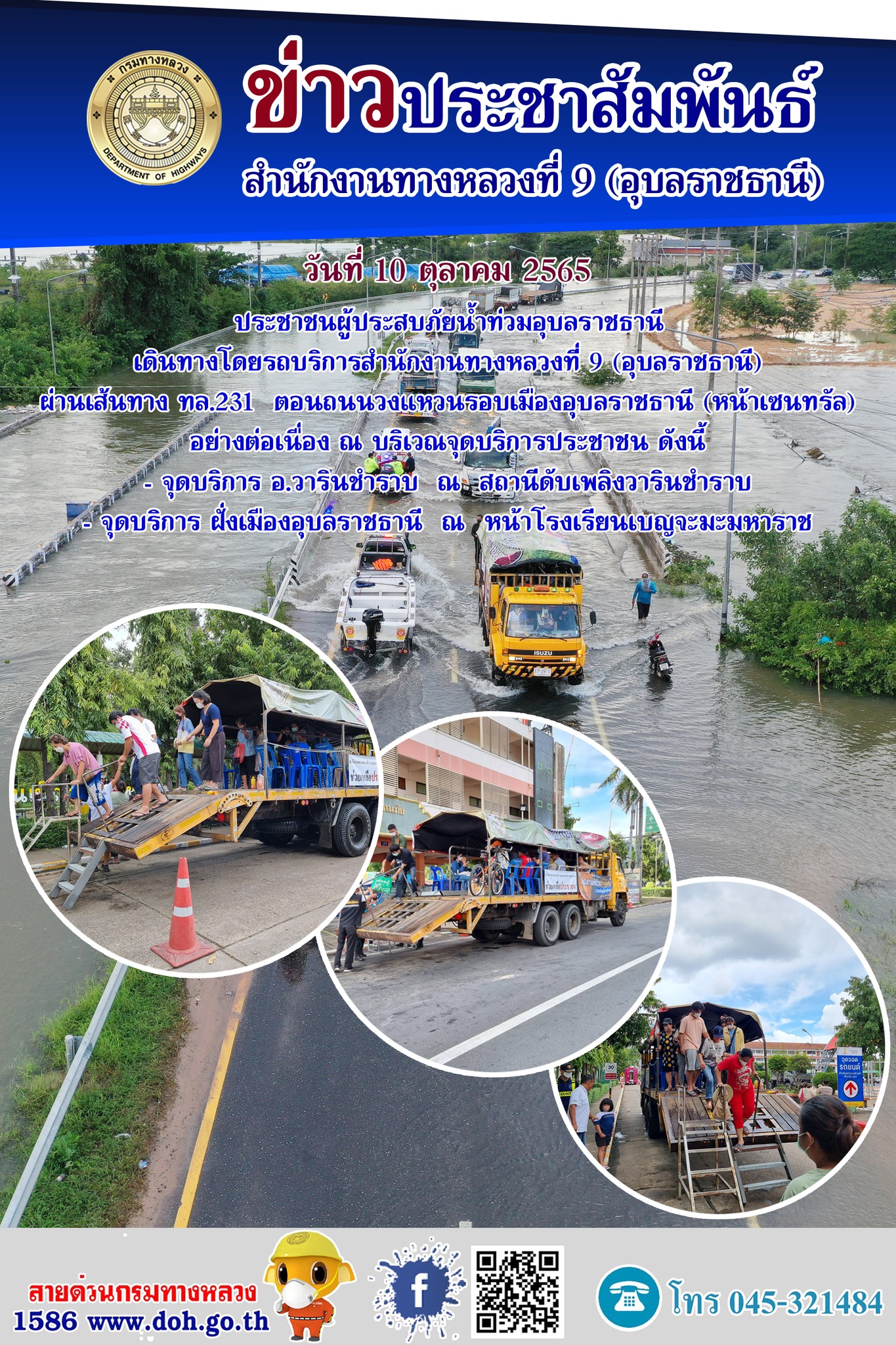 รถบริการสำนักงานทางหลวงที่ 9 รับ-ส่ง ประชาชนผู้ประสบภัยน้ำท่วม |