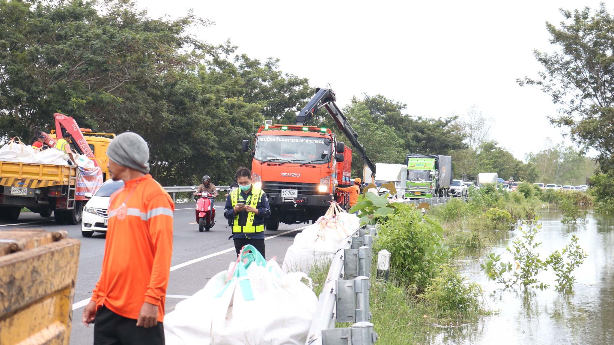 อัปเดตสถานการณ์ภัยพิบัติ การวางกระสอบทรายเป็นแนวป้องกันน้ำท่วม |