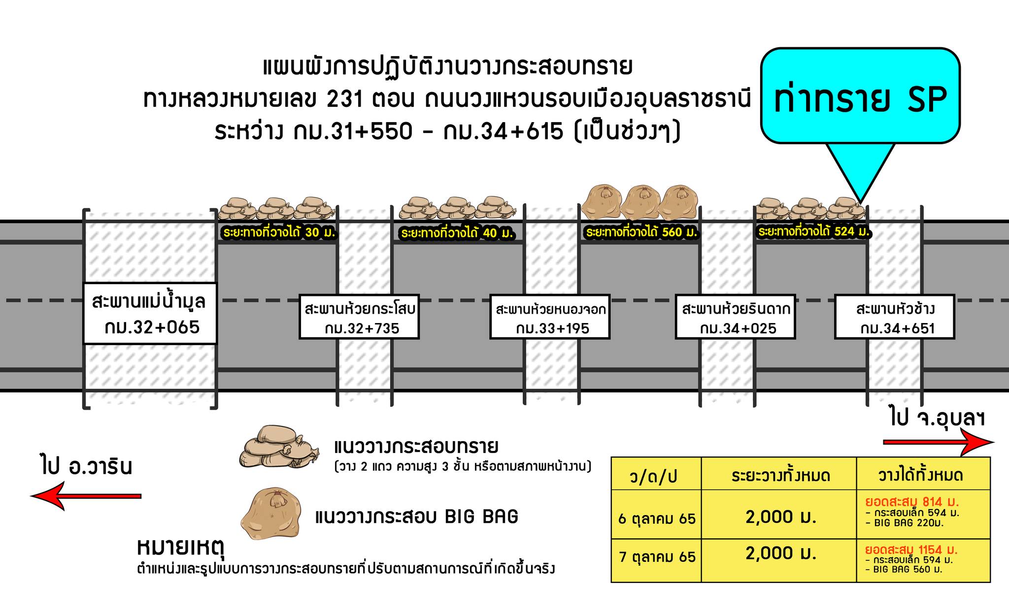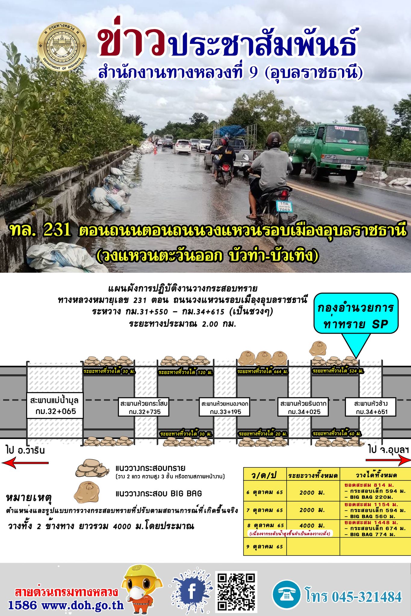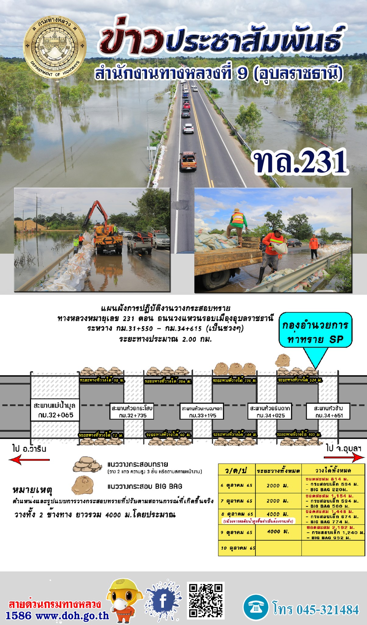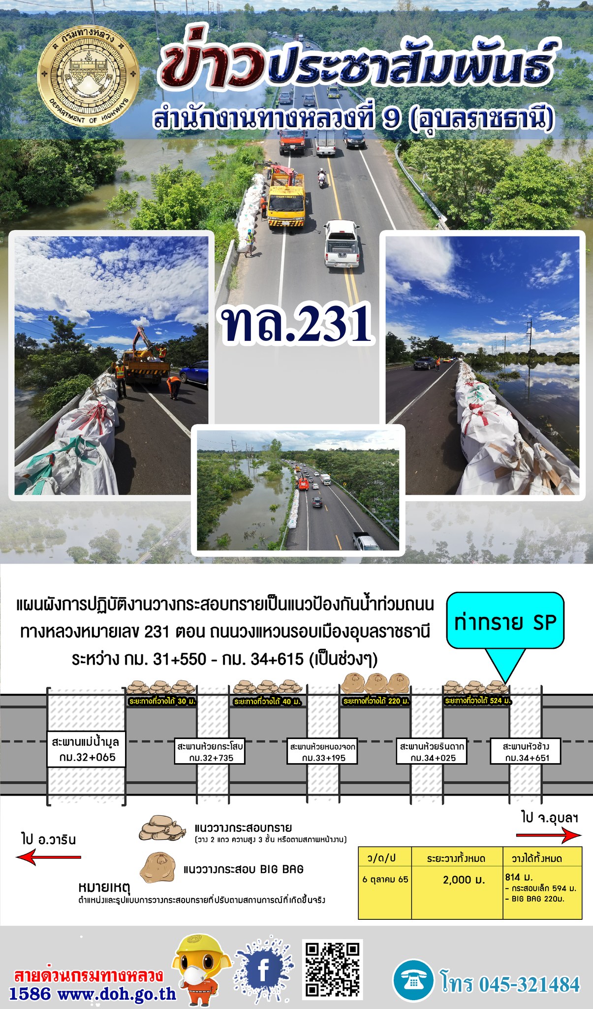 แผนการวางกระสอบทรายป้องกันน้ำท่วมถนน ทางหลวง 231 |
