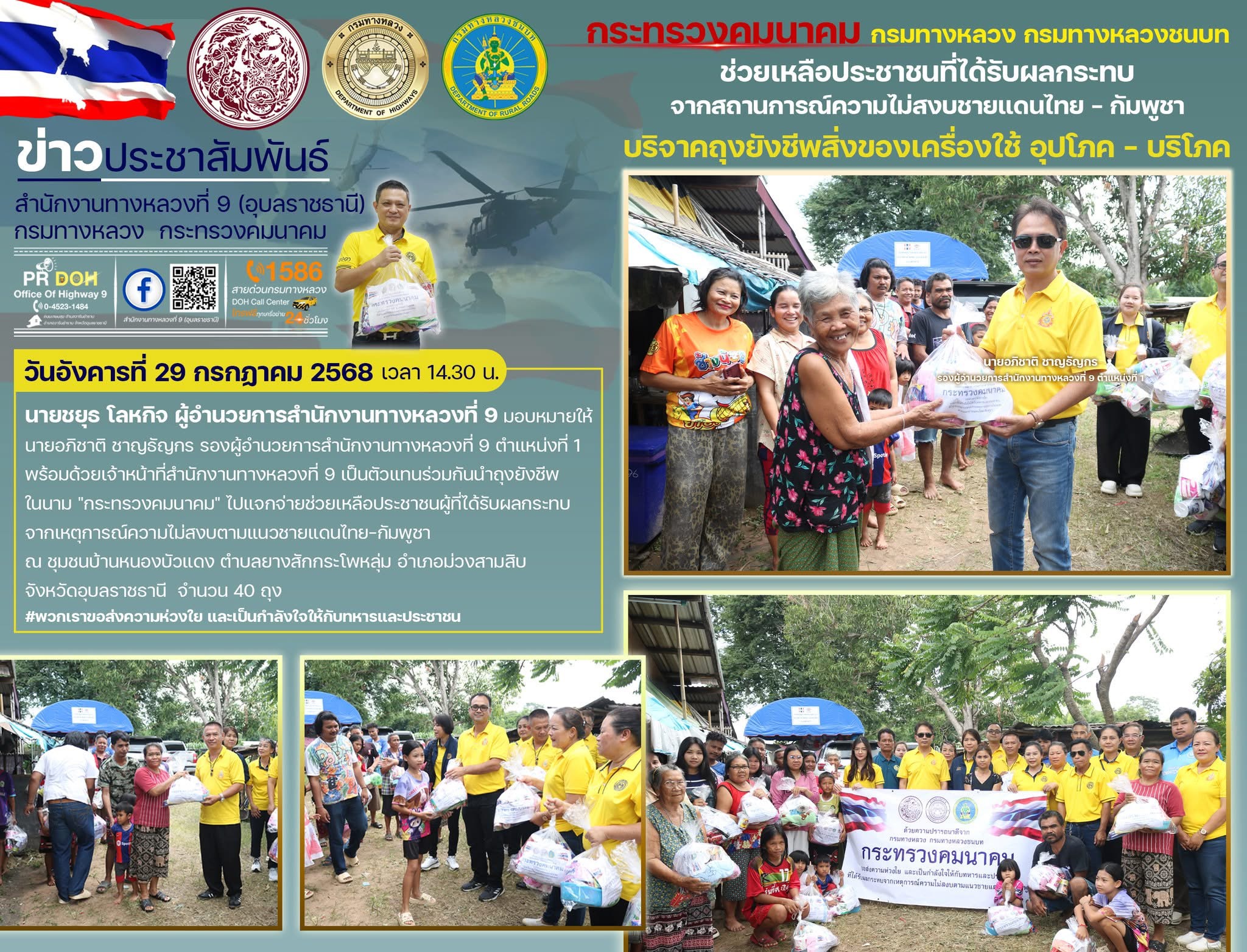 มอบถุงยังชีพผู้ที่ได้รับผลกระทบจากเหตุการณ์ความไม่สงบตามแนวชายแดนไทย–กัมพูชา