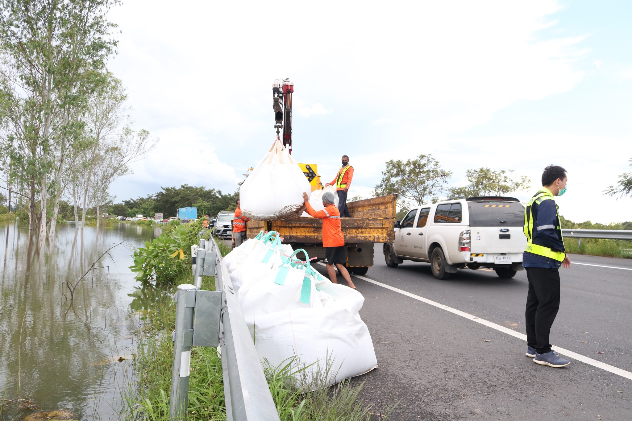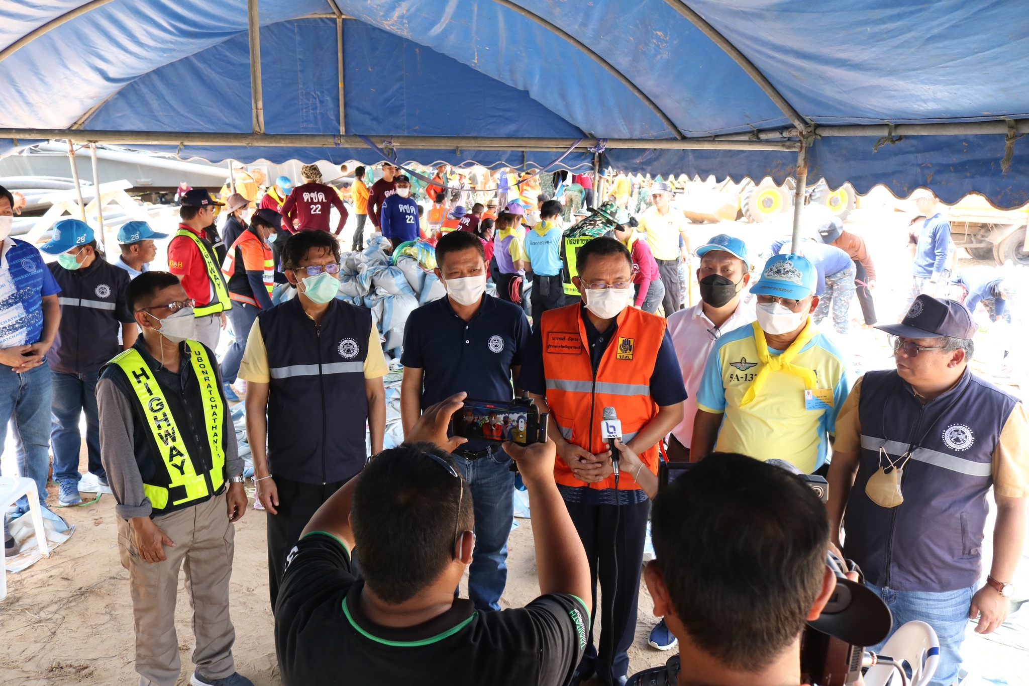 วันนี้ 6 ต.ค. 65 เวลา 14.00 น. นายชลธี ยังตรง ผู้ว่าราชการจังหวัดอุบลราชธานี ร่วมกับนายชยุธ โลหกิจ ผู้อำนวยการสำนักงานทางหลวงที่ 9 (อุบลราชธานี) นายเอกพงศ์ เศรษฐมานพ รองผู้อำนวยการสำนักงานทางหลวงที่ 9 นายวันปิยะ ภุมมะภูติ ผู้อำนวยการแขวงทางหลวงอุบลราชธานีที่ 1 นายวินัย รัชบุตร ผู้อำนวยการแขวงทางหลวงอุบลราชธานีที่ 2 เยี่ยมให้กำลังใจเจ้าหน้าที่หน่วยงานในสังกัดกรมทางหลวง จิตอาสา 904 และหน่วยงานที่เกี่ยวข้อง ชึ่งร่วมบูรณาการกรอกกระสอบทรายและถุงบิ๊กแบ็คจำนวนมาก เพื่อนำไปทำแนวกั้นน้ำ ทางหลวง 231 ตอนวงแหวนรอบเมืองอุบลราชธานี (บ้านบัวเทิง ตำบลสว่างวีระวงศ์) ณ บริเวณท่าทราย SP ตำบลกุดลาด อำเภอเมืองอุบลราชธานี จังหวัดอุบลราชธานี