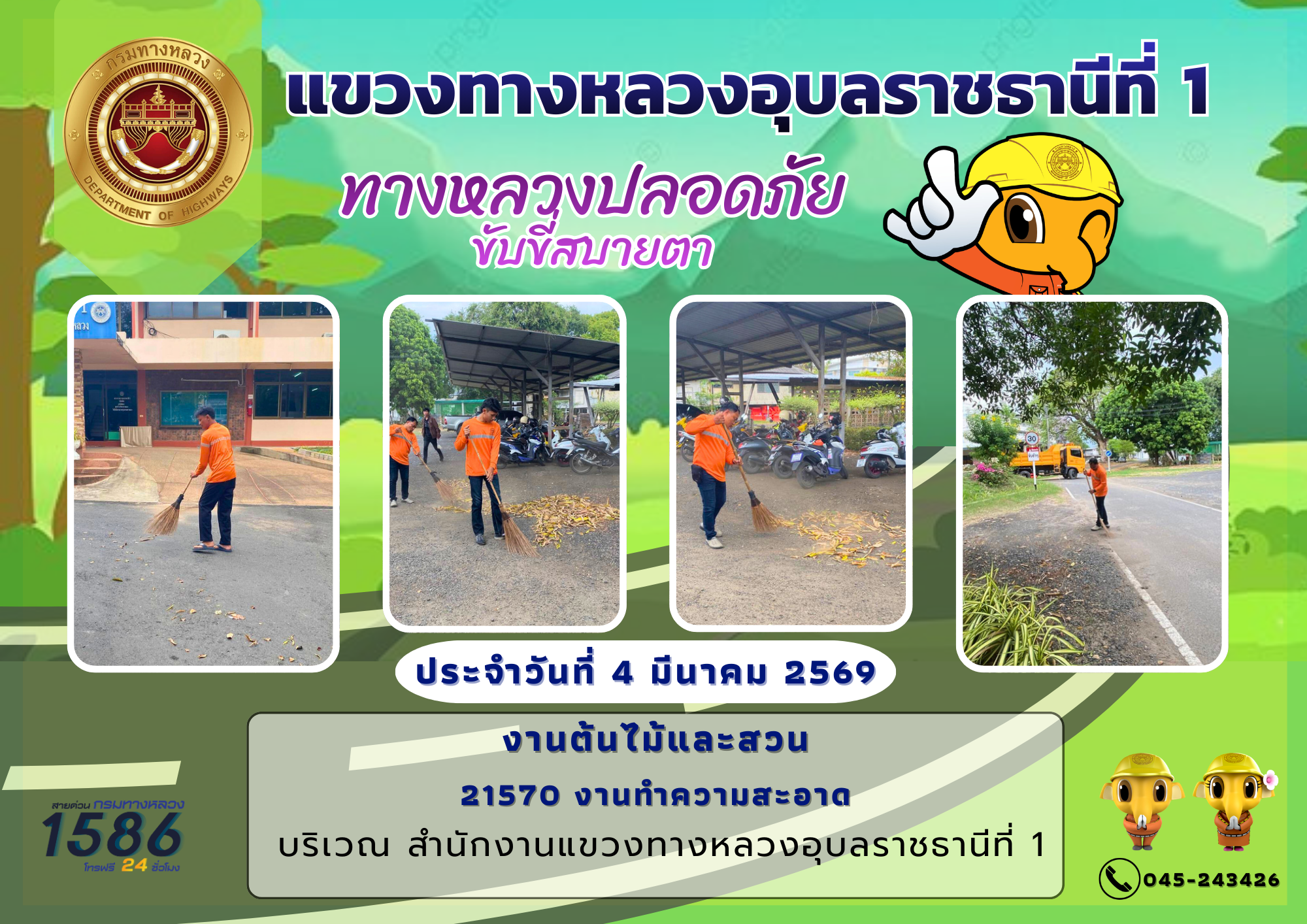 วิสัยทัศน์ : มุ่งมั่นพัฒนา ดูแล บำรุงรักษาทางหลวง ให้เป็นไปตามมาตรฐานกรมทางหลวง