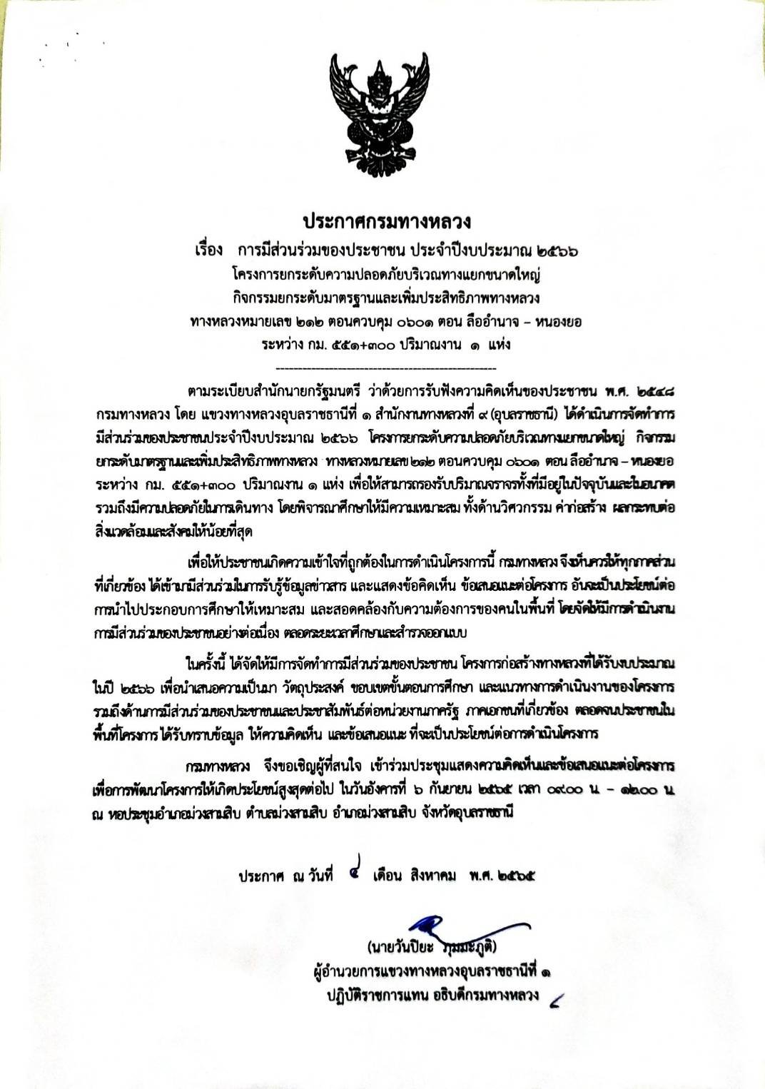 ขอเชิญเข้าร่วมประชุมการมีส่วนร่วมของประชาชน