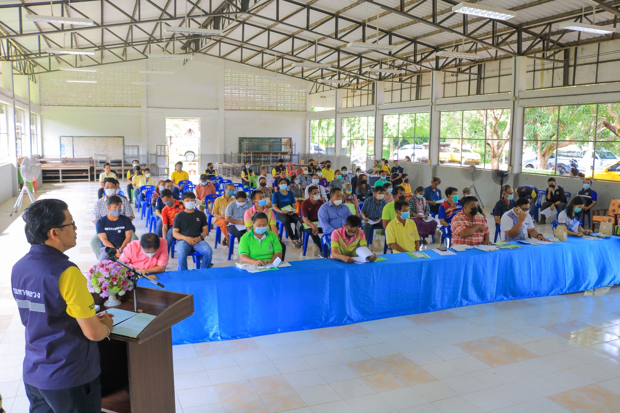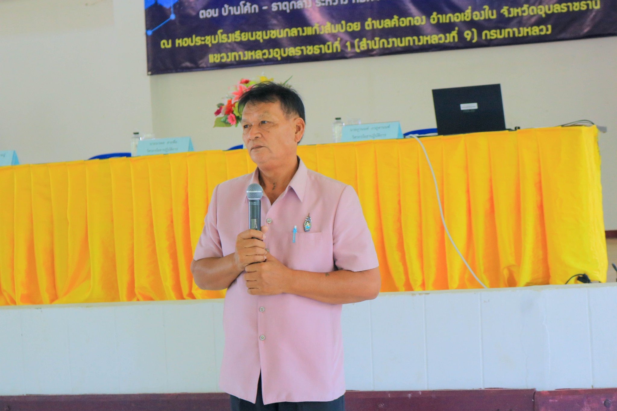 จัดการประชุม การมีส่วนร่วมของประชาชนปี 2566 โครงการก่อสร้างโครงข่ายทางหลวงแผ่นดิน กิจกรรมก่อสร้างเพิ่มไหล่ทางทางหลวงหมายเลข 2406 ตอนควบคุม 0100 ตอน บ้านโค้ก - ธาตุกลางระหว่าง กม.14+400 - กม.18+820 (เป็นช่วงๆ) ปริมาณงาน 1 แห่ง