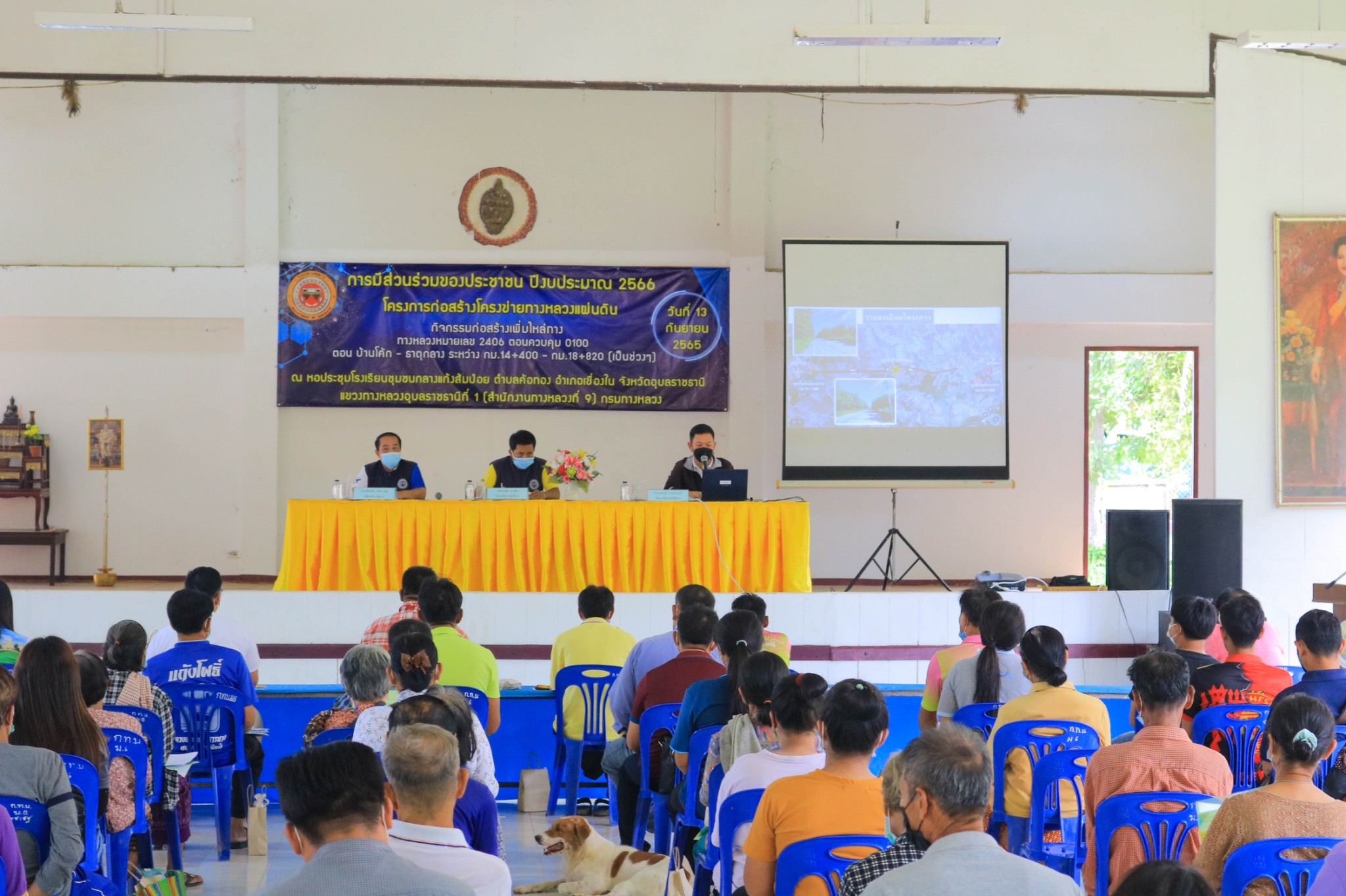 พร้อมด้วยเจ้าหน้าที่ในสังกัดฯ ดำเนินการจัดการประชุม การมีส่วนร่วมของประชาชนปี 2566 โครงการก่อสร้างโครงข่ายทางหลวงแผ่นดิน กิจกรรมก่อสร้างเพิ่มไหล่ทางทางหลวงหมายเลข 2406 ตอนควบคุม 0100 ตอน บ้านโค้ก - ธาตุกลางระหว่าง กม.14+400 - กม.18+820 (เป็นช่วงๆ) ปริมาณงาน 1 แห่ง โดยมี นายสมร ศิลากุล รองนายกองค์การบริหารส่วนตำบลค้อทอง เป็นประธานในพิธี ณ ห้องประชุมโรงเรียนชุมชนกลางแก้งส้มป่อย ตำบลค้อทอง อำเภอเขื่องใน จังหวัดอุบลราชธานี ทั้งนี้ เพื่อความปลอดภัย แขวงทางหลวงอุบลราชธานีที่ 1 จัดตั้งจุดคัดกรอง COVID-19 แจกหน้ากากอนามัย และเจลล้างมือ ก่อนการเข้าร่วมประชุม