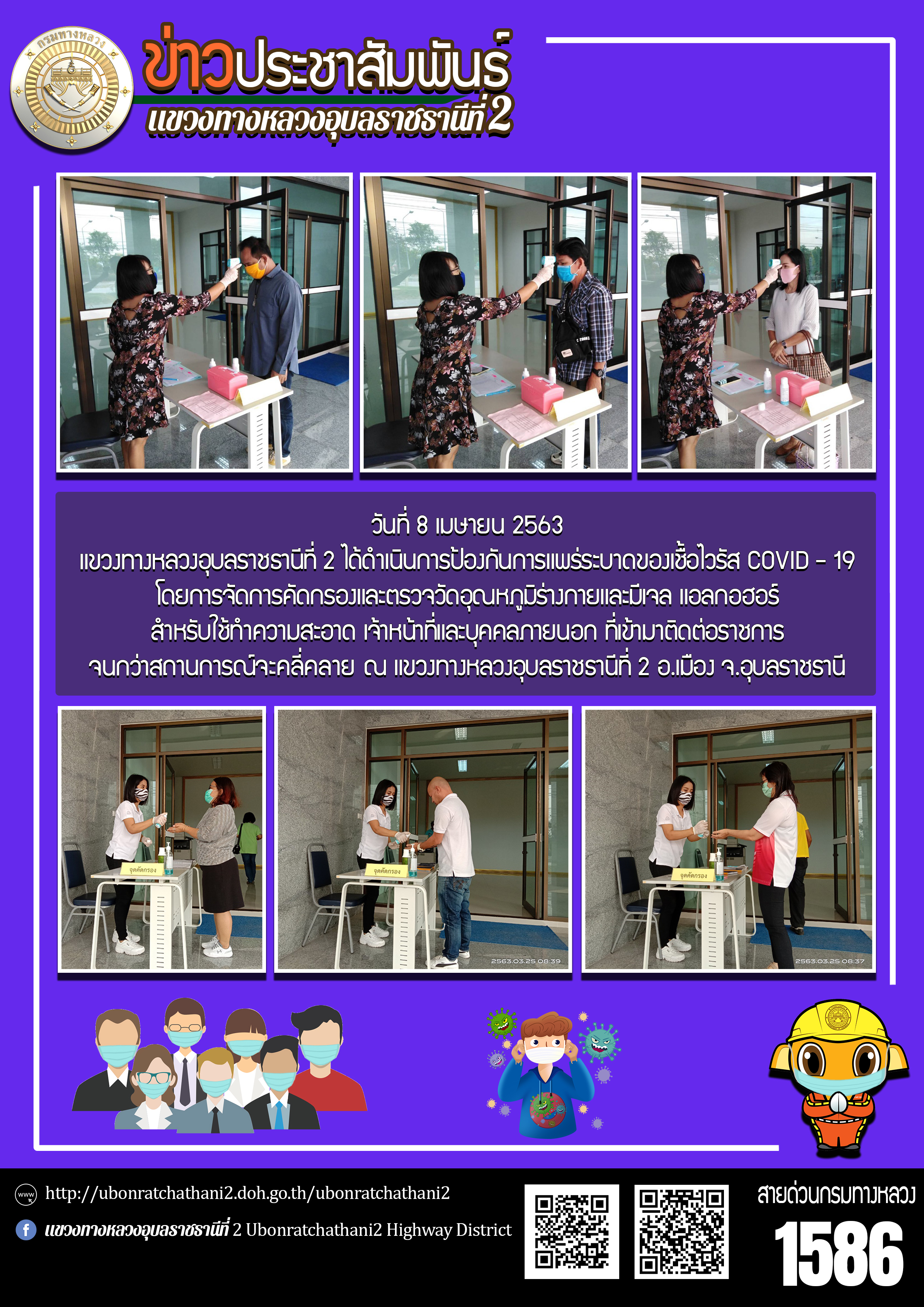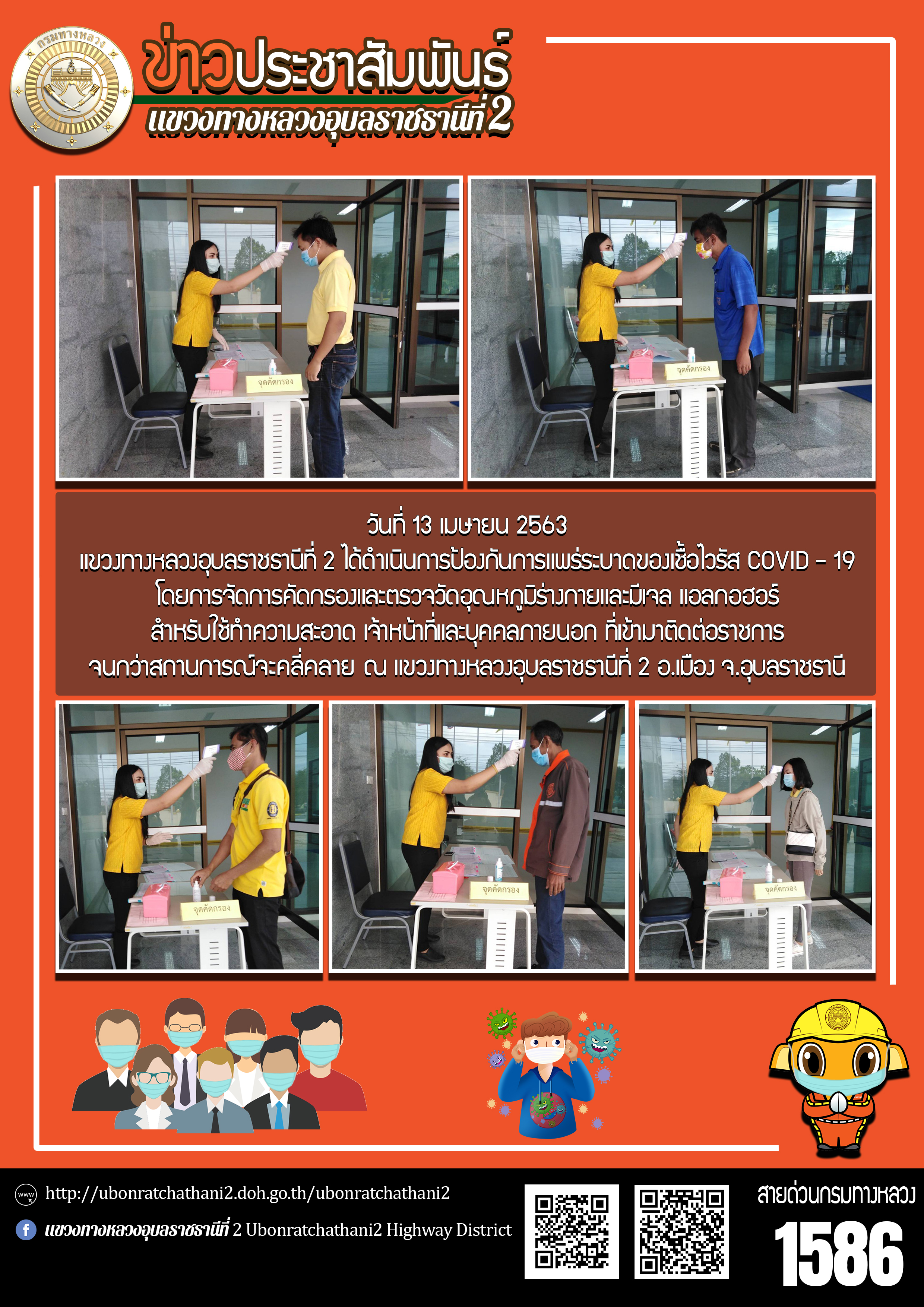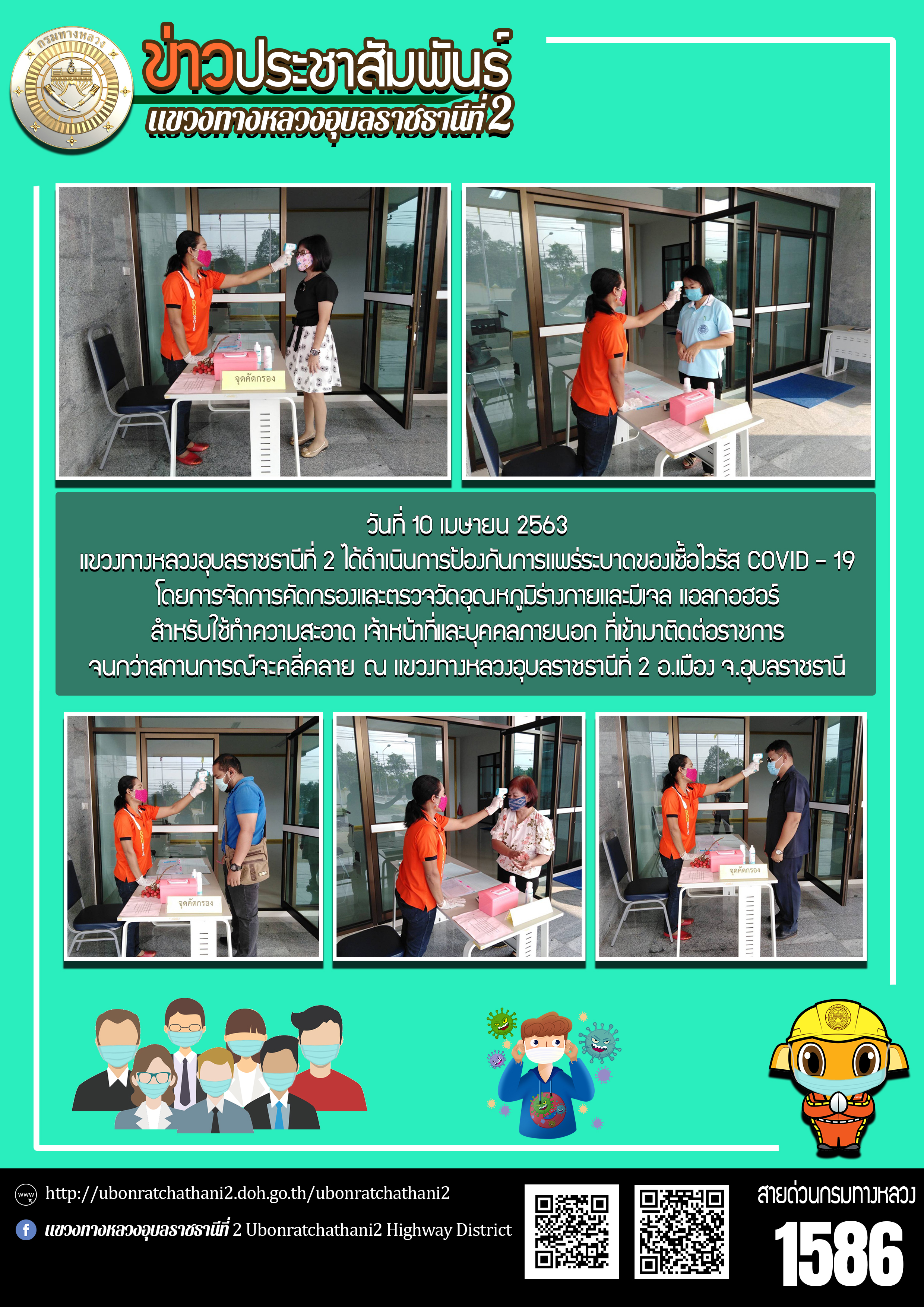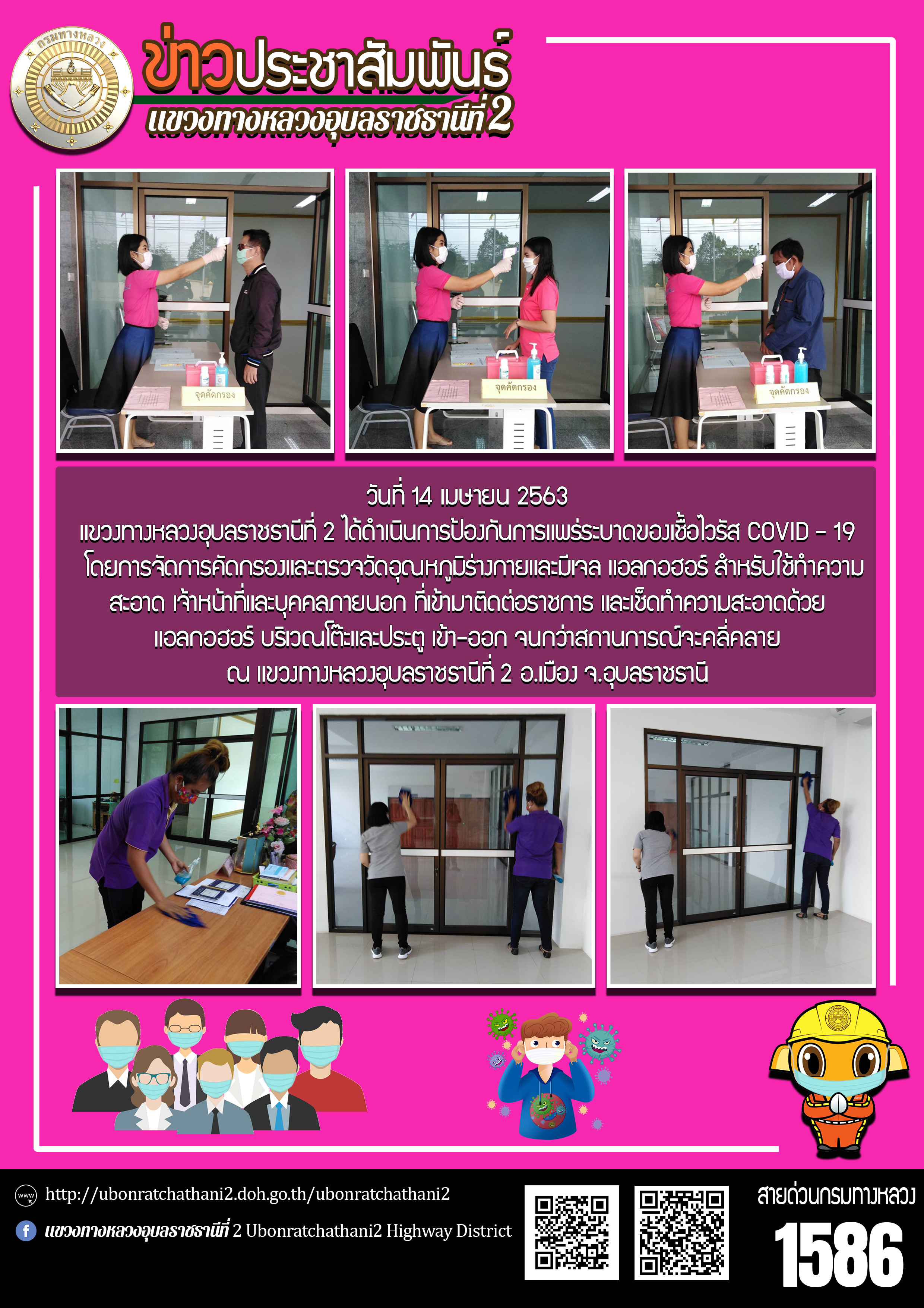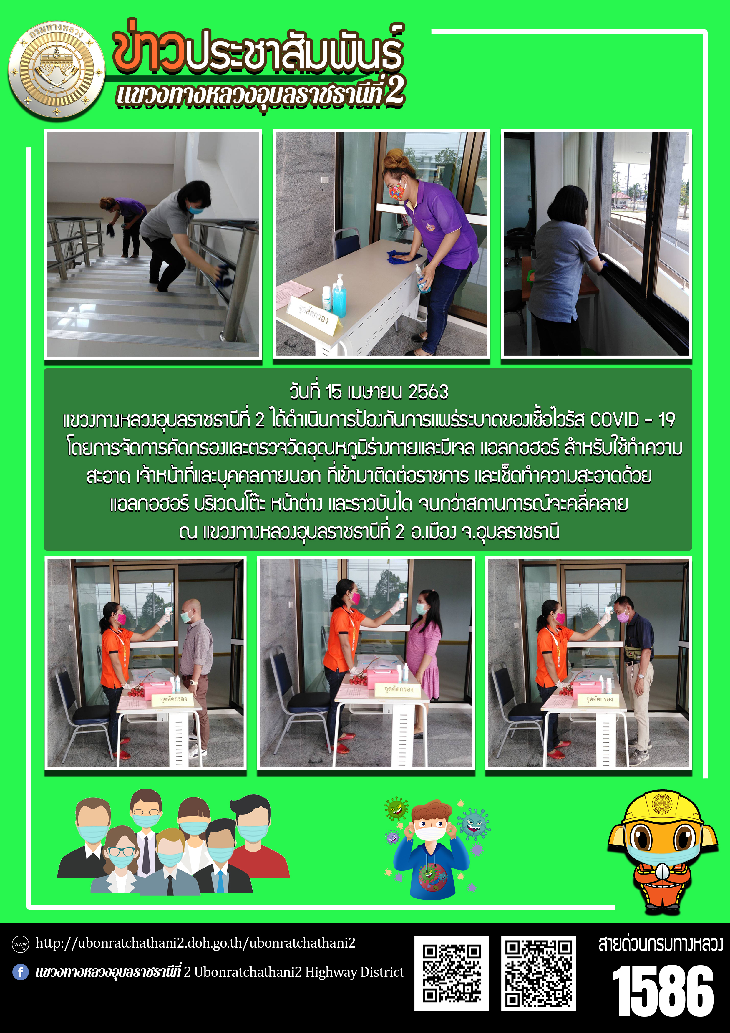 ฉีดพ่นน้ำยาฆ่าเชื้อไวรัส COVID - 19 ภายในบริเวณแขวงทางหลวงอุบลราชธานีที่ 2