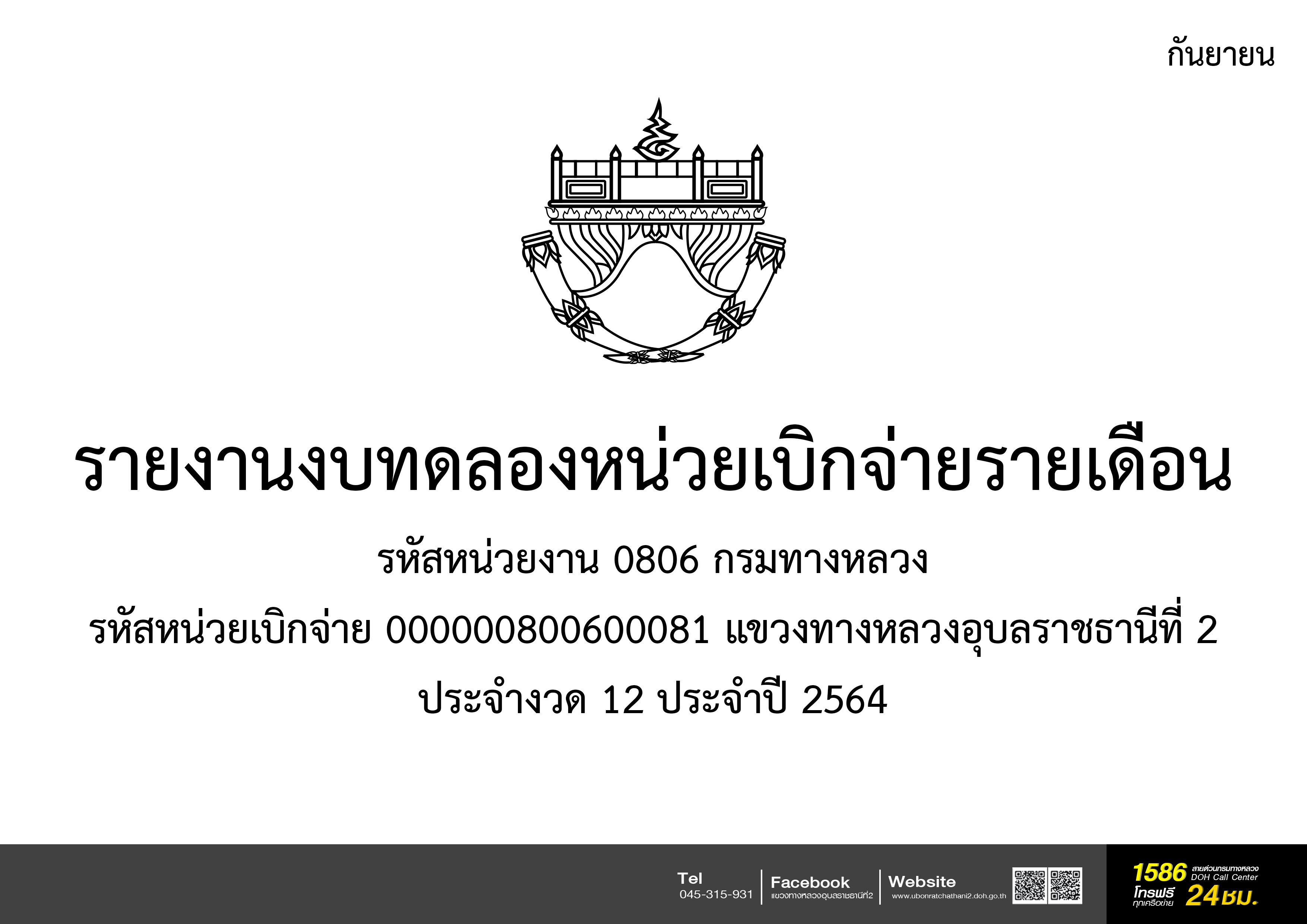 รายงานงบทดลองหน่วยเบิกจ่ายรายเดือน รหัสหน่วยงาน 0806 กรมทางหลวง