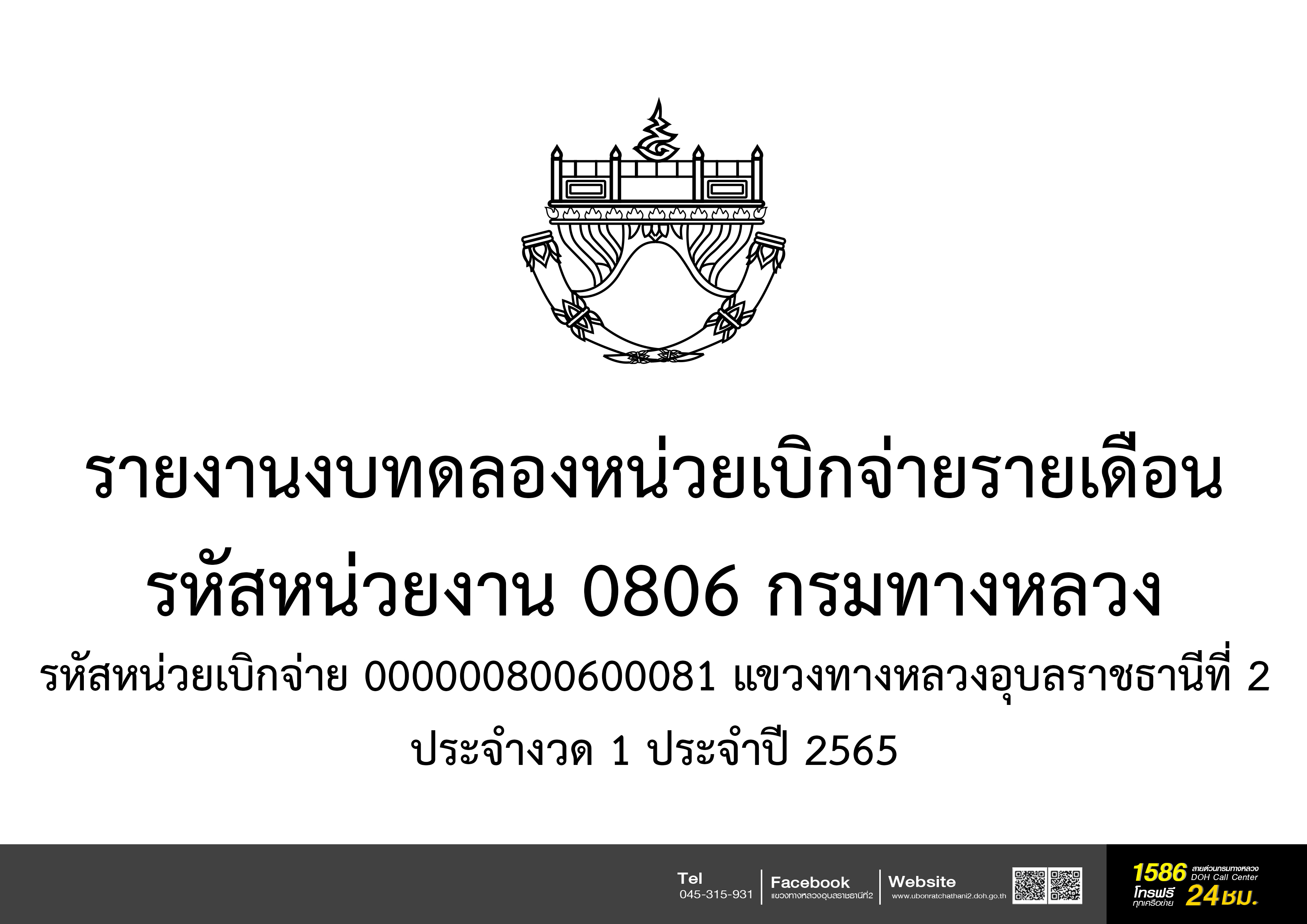 ประจำงวด 1 ประจำปี 2565 รายงานงบทดลองหน่วยเบิกจ่ายรายเดือน รหัสหน่วยงาน 0806 กรมทางหลวง